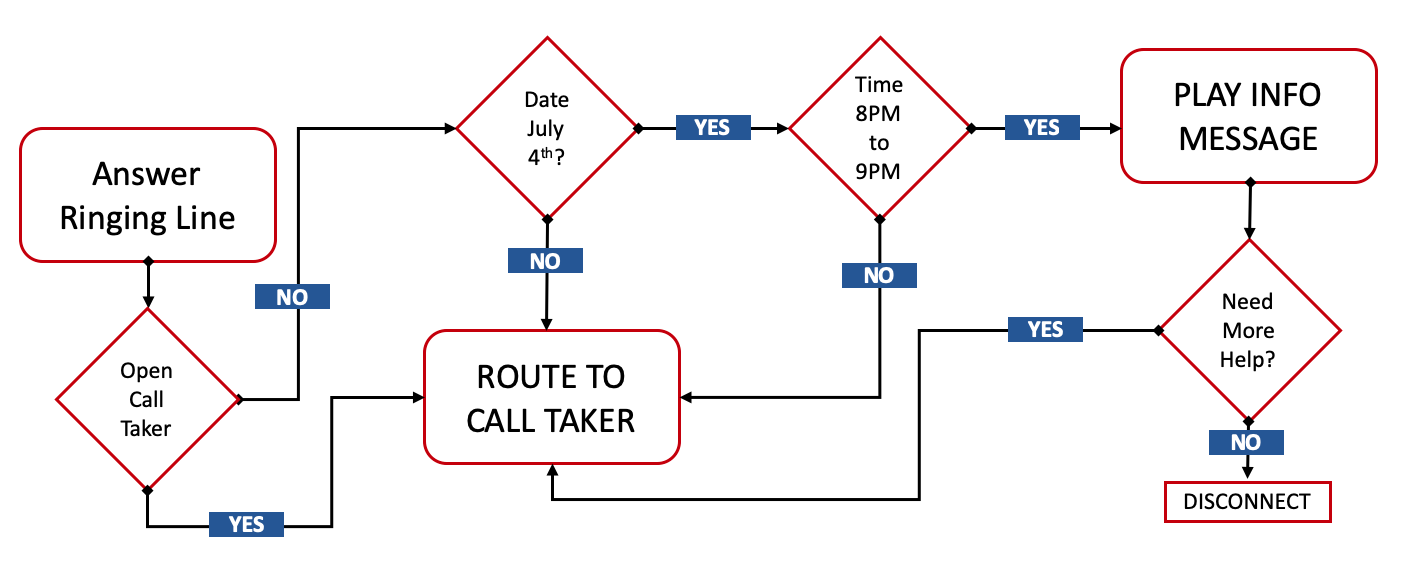 • . If not, que to the call takers, but if it is, intercept and play an informational message about where the fireworks are, and even direct them to the web for more information and safety tips.